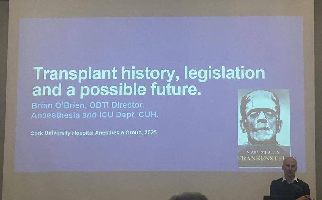 Speakers from the region included Dr Brian O’Brien (Consultant Anaesthesiologist, CUH) who delivered an informative lecture on organ transplantation.