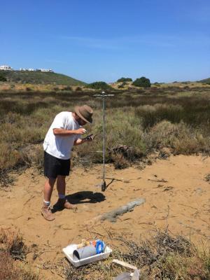 For the biological component, we investigated the various plant and animal species inhabiting the dunes (primary, secondary and tertiary dunes) as well as the surrounding sand marsh and island areas. Plant species and vegetation assessment was carried out by creating 25 m2 plots (5 replicates at each site) using the braun-blanquet scale. This method allows for rapid visual assessment of the plant coverage and animals present in each site. For benthic sampling, we used a 15 cm core at 3 different sites (3 replicates per site), with sedimentation nets that removed sediment and allowed us to assess the different in-faunal species. We found various types of amphipods, worms and clams. Plankton nets were used to carry out plankton surveys in the estuary as well as thermometers and refractometers to get an overall picture of why particular species would inhabit certain areas of the estuary. While on the field, we also came across a population of Fiddler crabs (Uca tangeri). This was quiet a nice find, as the crabs were not known previously to inhabit this specific area of Aljezur. We decided to do three random plots (10m x 2m) to assess the number of live crabs in the estuary, the number of burrows as well as the mean surface and burrow (at approx. 10cm deep) temperatures at each plot.