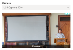 - In Teams (or Zoom etc), go to Device Settings -> Video Settings and select one of the “USB Capture SDI+” cameras in the list. They both have the same name, so you may need to try both to see which one is the one you need.