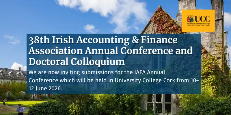 The 38th Irish Accounting & Finance Association Annual Conference and Doctoral Colloquium will be hosted at University College Cork from the 10th to 12th June 2026.