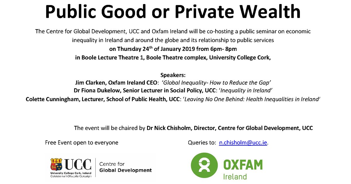 Oxfam Ireland together with Centre for Global Development host public workshop to coincide with the annual meeting of the World Economic Forum and the publication of Oxfam’s annual report on Economic Inequality,