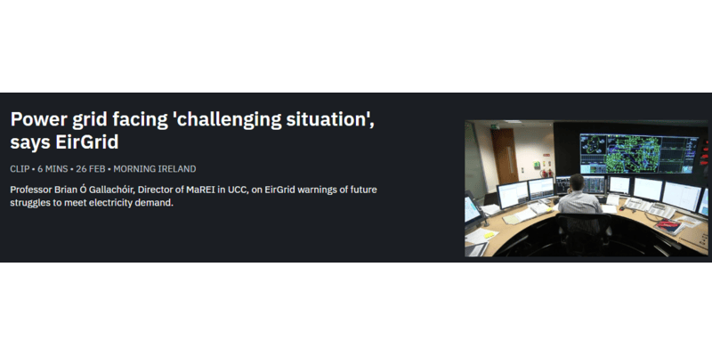 Professor Brian Ó Gallachóir, Director of The Sustainability Institute in UCC, on EirGrid warnings of future struggles to meet electricity demand. RTE Radio 1 interview.
