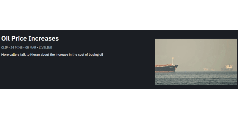 Dr. Paul Deane speaks to RTE Radio 1 on Oil Price Increases