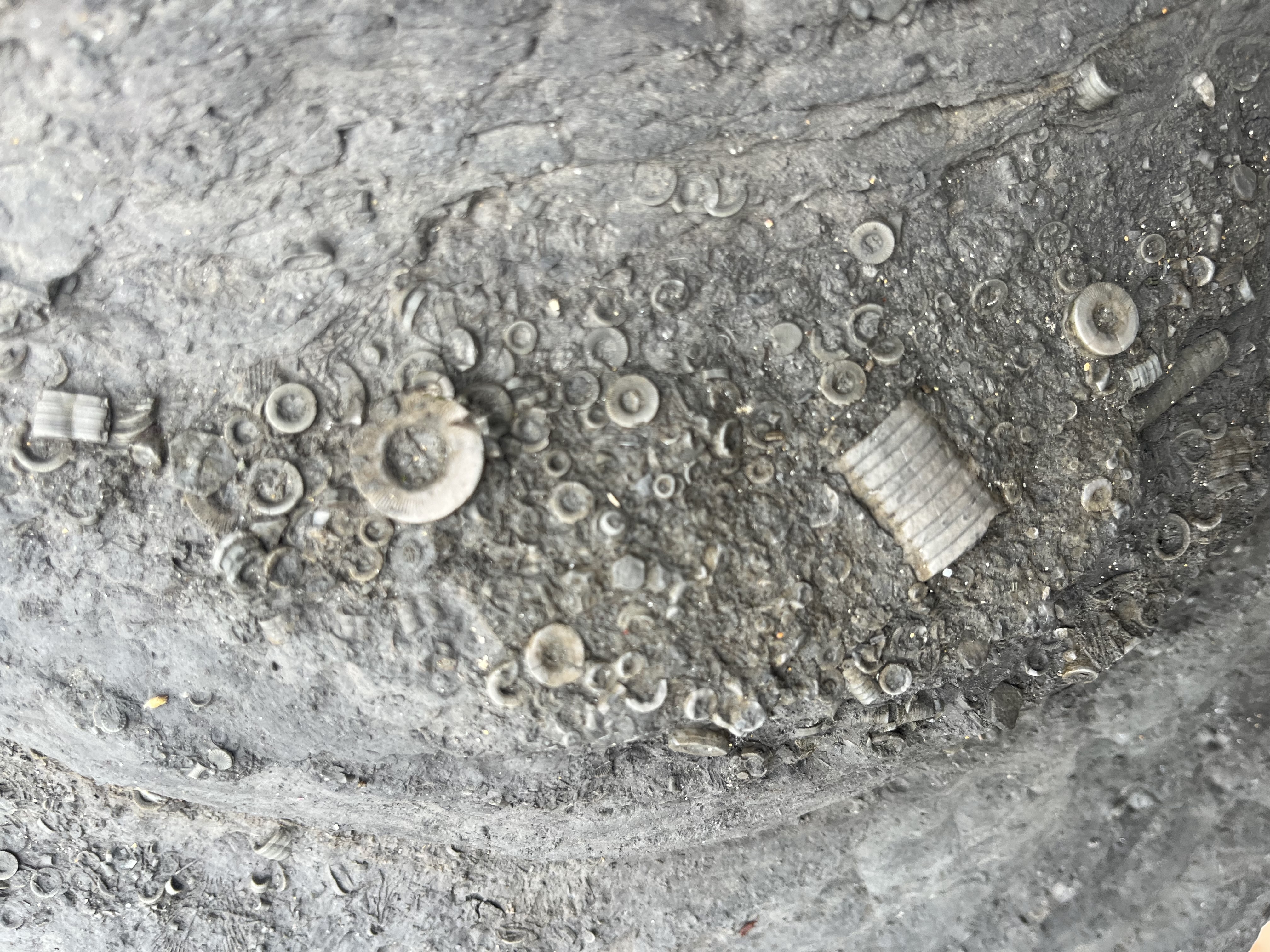 - Layers of limestone on the beach contain abundant brachiopod, coral and crinoid fossils. There are some rare but spectacular graptolite fossils also to be found here