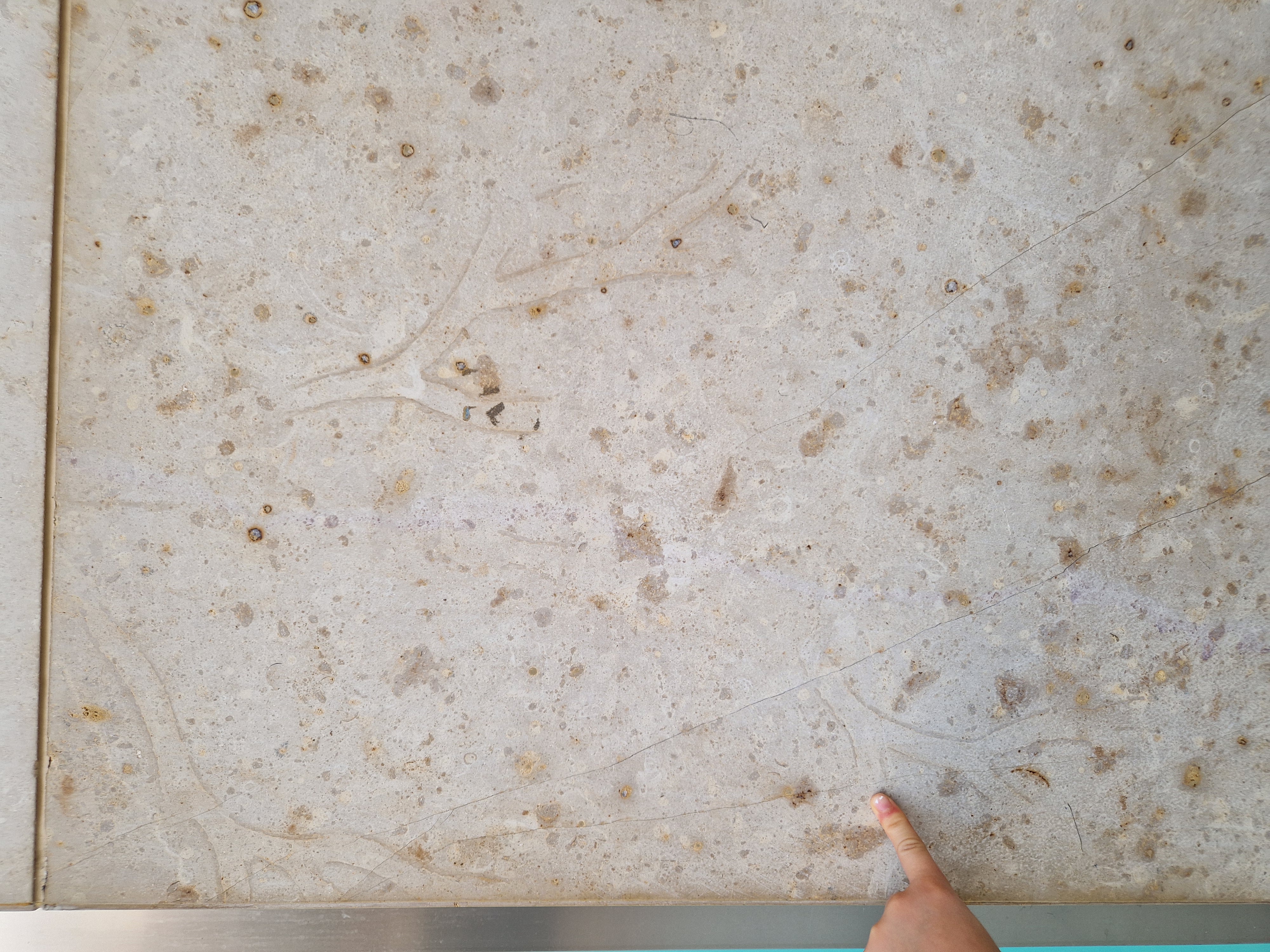 - The building stone of the external walls of the shopping centre is cream-coloured Jura limestone with abundant large branching burrows, ammonites, and worm tubes