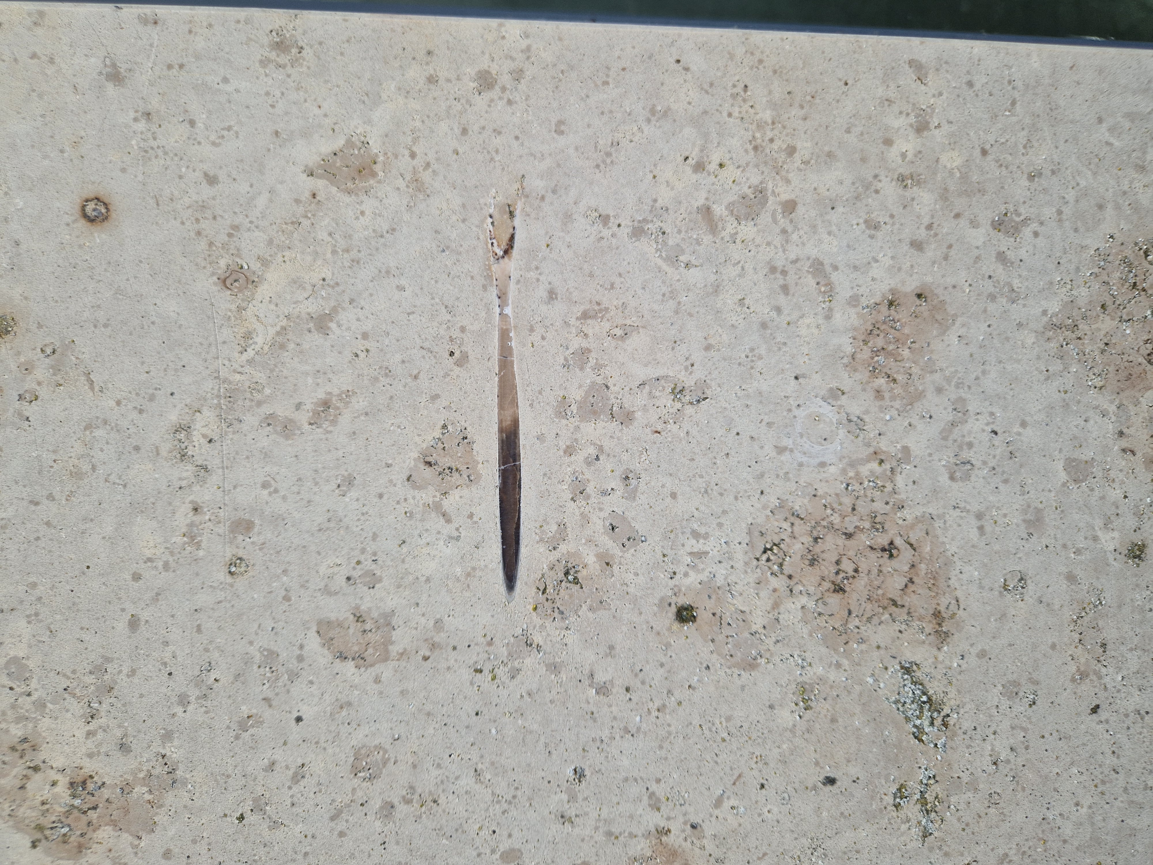 - The stone front of the shop is made of very fossiliferous Jura Limestone. There are many ammonites, belemnites, sponges and bivalves.
