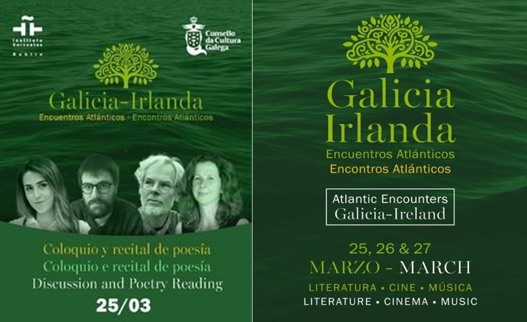 Martín Veiga presentou e moderou un coloquio e recital de poesía galega e irlandesa no marco dos Encontros Atlánticos Galicia-Irlanda organizados conxuntamente polo Consello da Cultura Galega e o Instituto Cervantes de Dublín. As poetas participantes foron Alba Cid e Daniel Salgado, por parte de Galicia, e Keith Payne e Grace Wells, poetas conectados con Galicia e Irlanda. Os Encontros consistiron nun conxunto de actividades sobre literatura, lingua, música e audiovisual que se desenvolveron os días 25, 26 e 27 de marzo de 2025 no auditorio do Instituto Cervantes de Dublín.