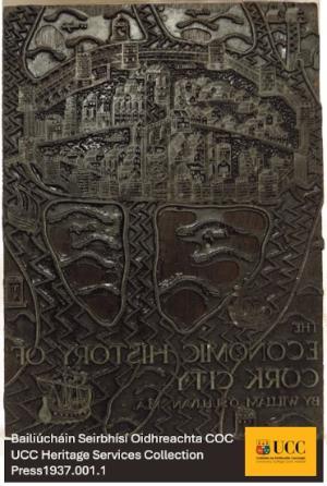UCC Heritage Services also contributed to the associated exhibition loaning print blocks from the UCC Heritage Services Collection. These included the print block used to create the dustjacket of William O'Sullivan's The Economic History of Cork City to 1800 (1937) (image below) and print blocks for photographs of George Boole's former home in Blackrock and the Boole Memorial window in UCC, used in Patrick D. Barry's George Boole: A Miscellany (1969).