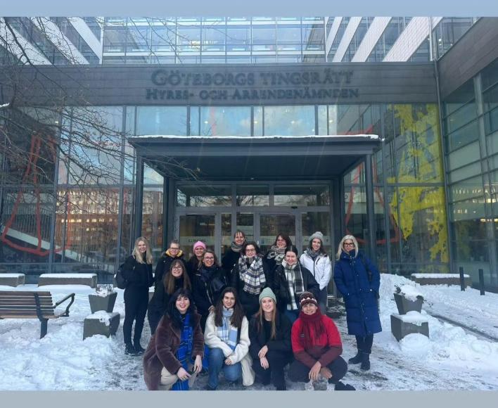In January 2024, 8 students from the new LW3377 Courtroom Ethnography module along with module lecturers Dr Samantha Morgan Williams and Dr Fiona Donson, visited our partner Institution University of Gothenburg. This trip, supported through a SATLE Large Grant (PI Dr Samantha Morgan-Williams) was designed to facilitate a knowledge-sharing initiative between University of Gothenburg and University College Cork within courtroom ethnography, as a novel method of legal education.