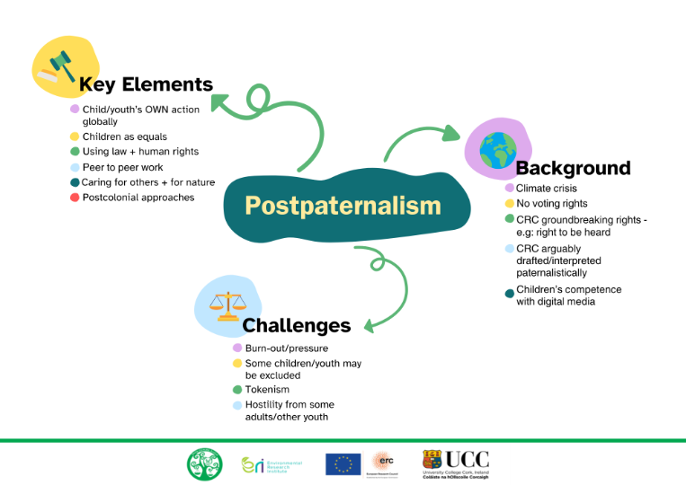 The concept of postpaternalism suggests that we can see grassroots action from children (for the first time, on a global scale), rather than well-meaning adults ‘giving’ children their rights. Future approaches to the UNCRC must reflect this, for example the Article 12 right to be heard primarily involves adults deciding which children are heard where, and when (and how much influence they have). This postpaternalist era however requires recognition of children/youth as leaders, and the transformative political contributions of under-18s.