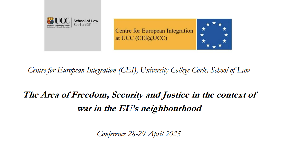 Dr Luigi Lonardo and Dr Roila Mavrouli recently hosted a conference focusing on the impact of armed conflicts on the Area of Freedom, Security and Justice (AFSJ) in UCC. The discussions explored the challenges for the Common European Asylum System, the Temporary Protection Directive, and the externalization of migration controls. A central theme of the conference was the EU's legal obligations to protect fundamental rights and the rule of law, particularly in the context of war in the EU’s neighbourhood.