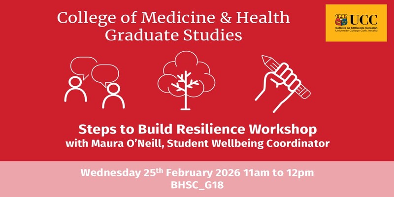 Please note that workshops organised by the College of Medicine & Health Graduate School are only open to Research Postgraduate Students and Supervisors within the College. For details of all upcoming Graduate School events please see https://www.ucc.ie/en/med-health/gradstudies/news-and-events/.