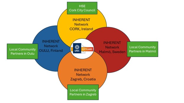 The conference represented a stage of the INHERENT project which aims to develop an IH network in Cork alongside a number of similar networks in partner European cities, together creating the INHERENT consortium. (See diagram below.)