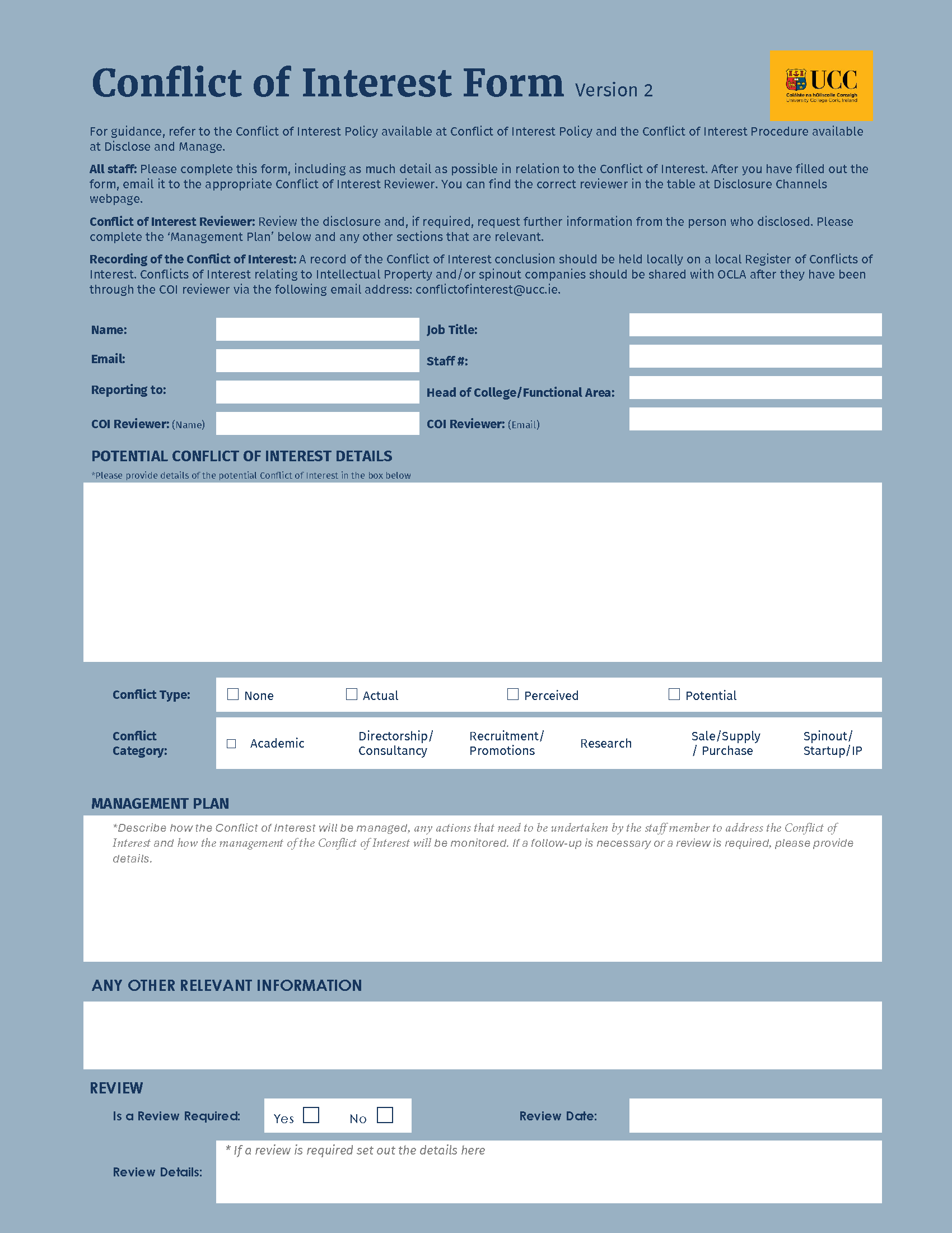 | Published location | https://www.ucc.ie/en/ocla/policy/conflict-of-interest/policy/ |