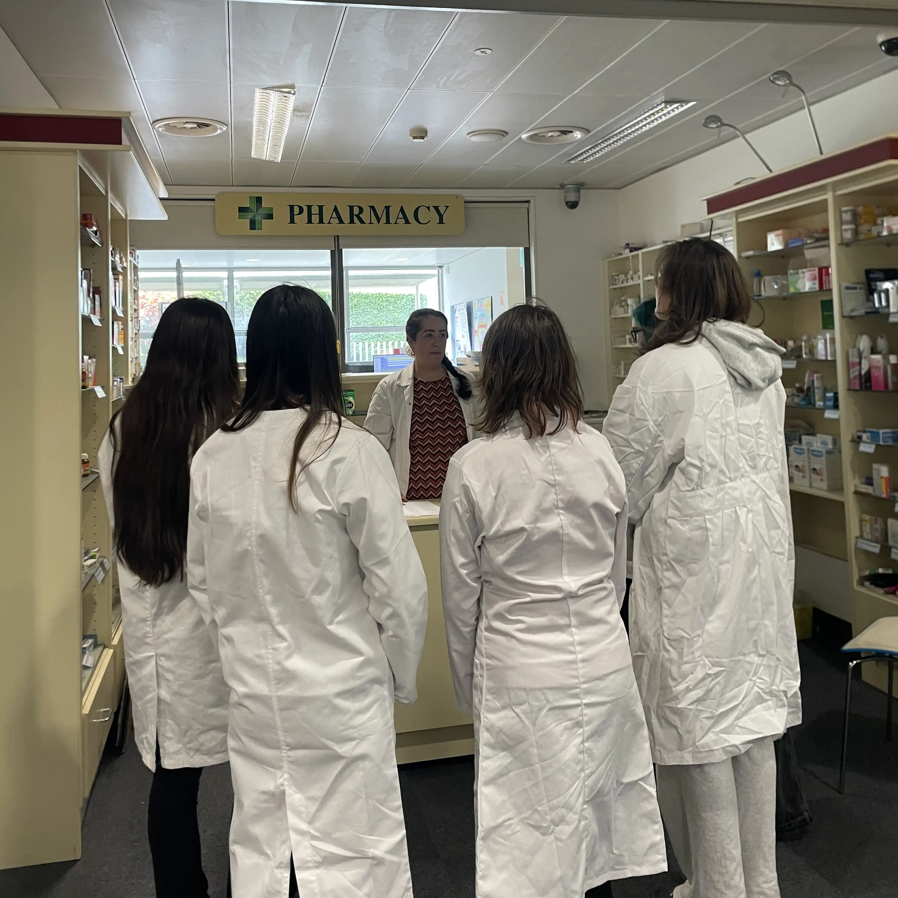 On Wednesday, 1 April, students participated in a workshop in the Pharmacy Building. This session included a series of practical activities, from role-playing a patient-pharmacist scenario, learning the importance of aseptic processing, preparing blister packs/pill boxes, and exploring pharmaceutical tablet production and composition. On Friday students learned about proper use of inhalers. These sessions were delivered by Dr Teresa Barbosa, Dr Maria Donovan, Dr Suzanne McCarthy, Dr Mary O’Connell Motherway, Dr Kevin Murphy, Dr Katie Ryan, and the PhD students Nancy Moore and Ellen Melia.