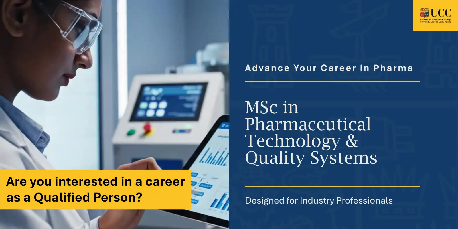 We are now accepting applications for the Sept 2026 intake of the MSc Pharmaceutical Technology & Quality Systems programme at University College Cork.