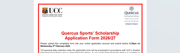 Step One: Go to www.ucc.ie/en/quercus. Click on the page of the Quercus scholarship strand that you would like to apply for. There are four strands that you can apply for; Active Citizenship, Creative & Performing Arts, Innovation/Entrepreneurship & Sports. You can apply for as many strands as you like but each strand will require a separate application form.