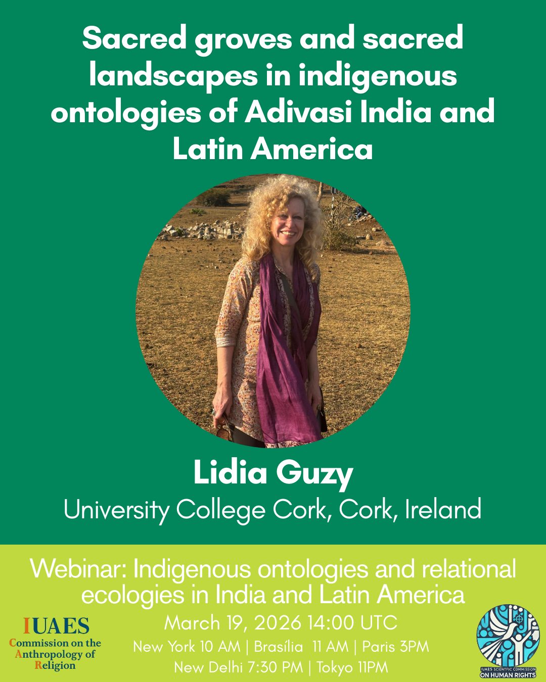 Bio: Dr hab Lidia Guzy is MA Anthropology Programme Director, Former Head Study of Religions Department, Associate Professor in South Asian Religions, Director of Marginalised and Endangered Worldviews Study Centre (MEWSC), Director India Study Centre Cork (ISCC) and Member of Latin American Strategy Group at University College Cork (UCC), National University of Ireland. As a social anthropologist, scientist of religions, and ethnomusicologist, Dr Guzy specialises in thea nthropology of music and religions and global indigenous studies and Indian Adivasi studies in India and South America. Dr Guzy has dedicated her research to comparative anthropology with special interest in indigenous worldviews, eco-cosmologies, indigeneity, cultural heritage, the global new museum movement, cultural minorities, the politics of representation and the arts. Dr Guzy is involved in comparative research on marginalised and endangered worldviews, indigenous knowledge systems and eco-cosmologies. She investigates indigenous knowledge and questions of sustainability. Her recent research projects include comparative research on indigenous knowledge and spiritual systems in India and in Latin America.