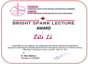 - Earned prestigious awards, including the Best Paper Award 2023 (Tunnelling and Underground Space Technology) and the 2023 Bright Spark Lecture Award (ISSMGE).