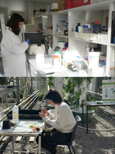The photos below include moments from the day, along with images of two of our female project members, Lucía and Marie, working in the lab, in the glasshouse, and taking part in outreach activities.