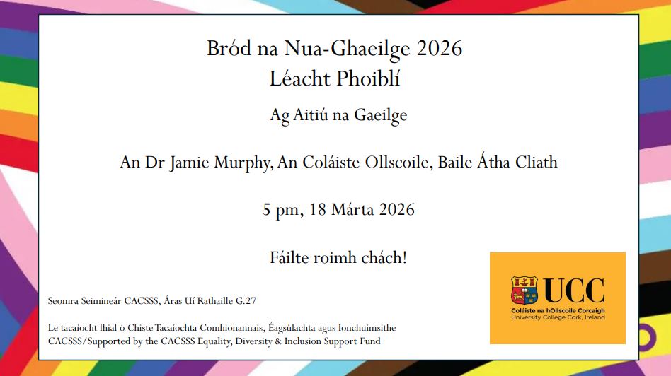 Bíonn dhá sheimineár phoiblí á stiúradh ag an Oll. Pádraig Ó Macháin i gcaitheamh na bliana acadúla: